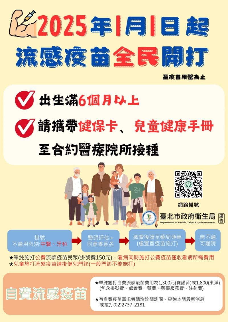 鄭雅瑋2025-01-03T08:51:55+00:00114年度臺北市免費老人健康檢查提早開辦囉!! 服務對象-設籍於臺北市年滿65歲之長者/年滿55歲之原住民 取號方式-本年度僅提供網路或電話預約,無現場取號 ●網路或電話取號:共2250個名額 ● 取號時間:特殊族群:1月06日星期一早上8點至1月10日下午5點 一般長者:1月15日星期三早上8點至號碼取完為止 ● 臺北市衛生局公佈網路取號網址:https://aged.health.gov.tw ● [...]