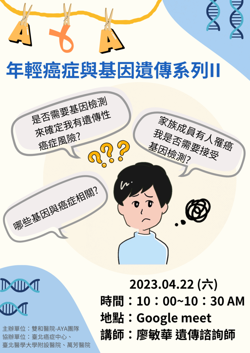 【AYA線上活動】 年輕癌症與基因遺傳系列(二)