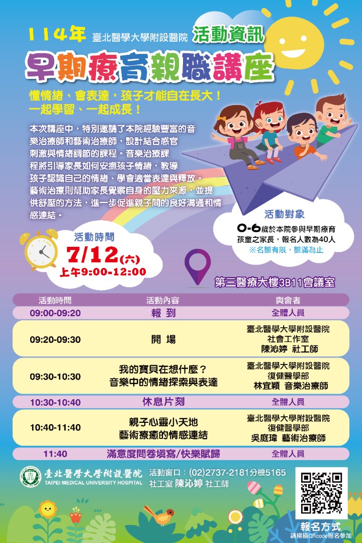 【臺北醫學大學附設醫院】114/7/12(星期六)09:00-12:00 早期療育親職講座