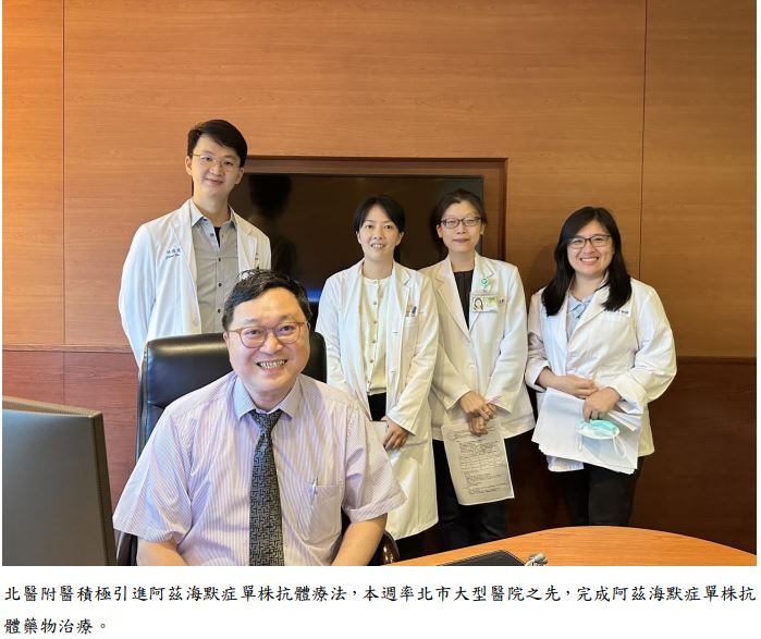 【臺北醫學大學附設醫院】失智不等於失望 失智症治療新篇章 北醫附醫率北市大型醫院之先 完成阿茲海默症單株抗體藥物治療