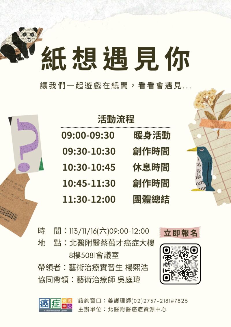 113/11/16–北醫附醫 癌症資源中心 病友活動:紙想遇見你