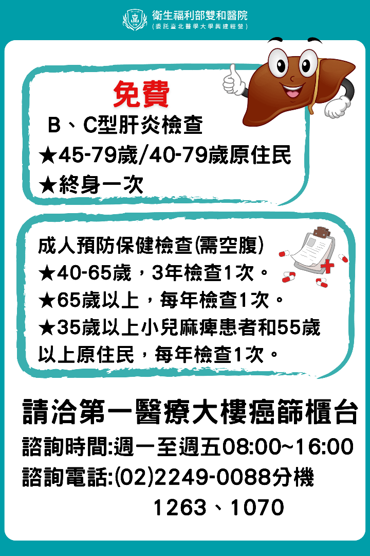 【雙和醫院】「愛健康」成人健康檢查&B、C肝篩檢,報你知